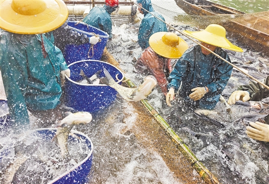 ????目前,大沙河水庫進(jìn)入捕魚季。近年來,開平市大沙鎮(zhèn)深入踐行“綠水青山就是金山銀山”理念,堅(jiān)持山水林田湖草沙一體化保護(hù)和系統(tǒng)治理,大沙河水庫實(shí)現(xiàn)“以魚凈水、以魚養(yǎng)水、以魚調(diào)水”,水質(zhì)常年保持在Ⅱ類標(biāo)準(zhǔn)以上。