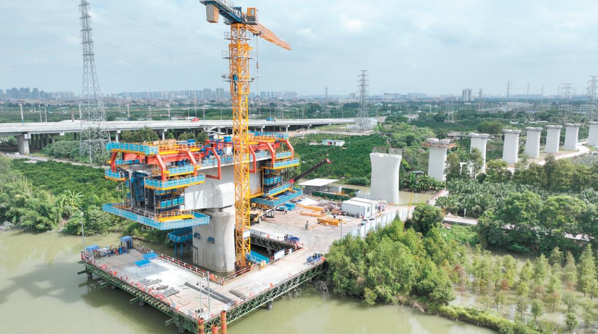 智慧造橋機正在“打印”橋梁。 江海區(qū)住房和城鄉(xiāng)建設(shè)局供圖