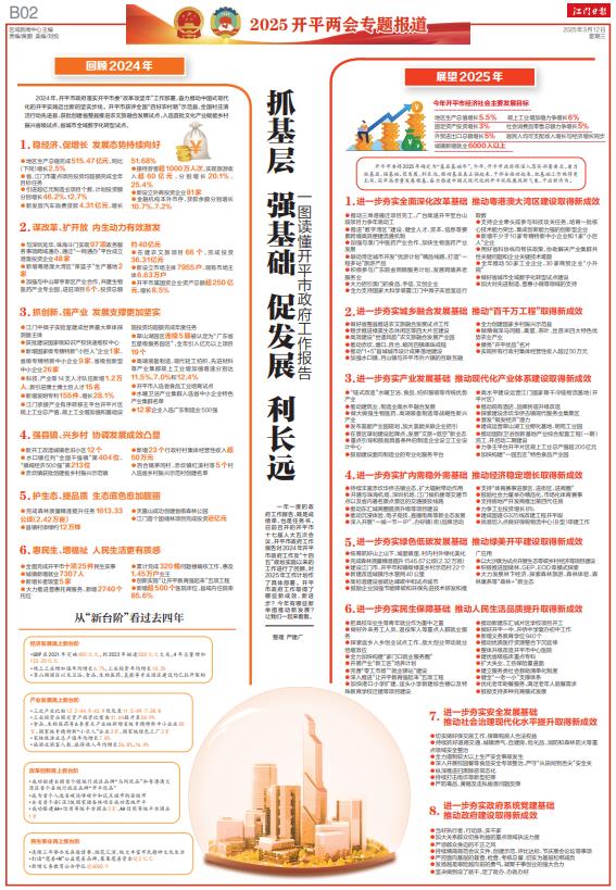 ????一年一度的政府工作報告,既是成績單,也是任務(wù)書。日前召開的開平市十七屆人大五次會議,開平市政府工作報告對2024年開平市政府工作及“十四五”規(guī)劃實施以來的工作進行了回顧,對2025年工作計劃作了具體部署。開平市政府工作取得了哪些新成效、新進步?今年有哪些新舉措推動新發(fā)展?讓我們一起來看看。