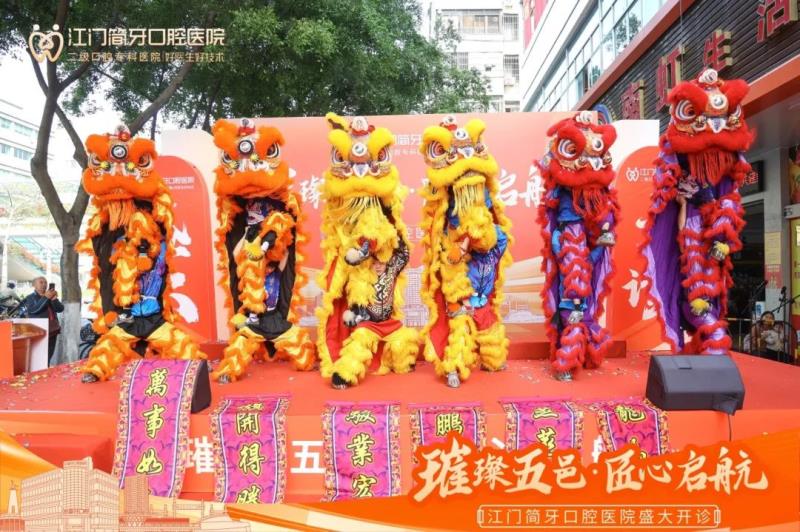 當(dāng)點睛之筆觸及獅目的剎那,現(xiàn)場掌聲雷動。祥獅抖擻精神,以矯健之姿演繹“采青”祥瑞,寓意著江門簡牙口腔如醒獅般銳意進取,以仁心仁術(shù)守護五邑市民的口腔健康。
