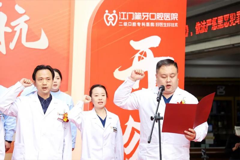 在江門簡牙口腔醫(yī)院醫(yī)療院長栗晗的帶領(lǐng)下,簡牙醫(yī)護團隊列隊而立,莊嚴起誓:恪守醫(yī)道,精進技藝,讓每一次診療都經(jīng)得起良知的叩問;以心相待,以誠相交,讓每一份托付都值得生命的重托;用溫暖化解恐懼,以專業(yè)守護信任,讓每一張笑臉都綻放自信光彩。