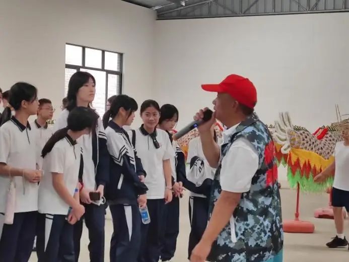 活動(dòng)現(xiàn)場,陳永亮和陳錦瑞分工明確、各司其職、各盡所能,為參觀研學(xué)的東莞東華學(xué)校師生們講解紗龍歷史、制作工藝以及紗龍舞基本動(dòng)作。芝山紗龍是潮連當(dāng)?shù)氐墓爬厦耖g藝術(shù),距今已有700多年的歷史,經(jīng)過數(shù)百年的傳承和發(fā)展,潮連芝山紗龍?jiān)?015年被列入江門市第五批市級非物質(zhì)文化遺產(chǎn)名錄。與一般的舞龍表演不同,潮連芝山紗龍?jiān)邶埳韮?nèi)部點(diǎn)上蠟燭,這種獨(dú)特的裝飾方式使得它在夜晚表演時(shí)更具有別樣的韻味。陳永亮和陳錦瑞繪聲繪色的講述,引得現(xiàn)場學(xué)子們不時(shí)爆發(fā)出陣陣熱烈的掌聲。