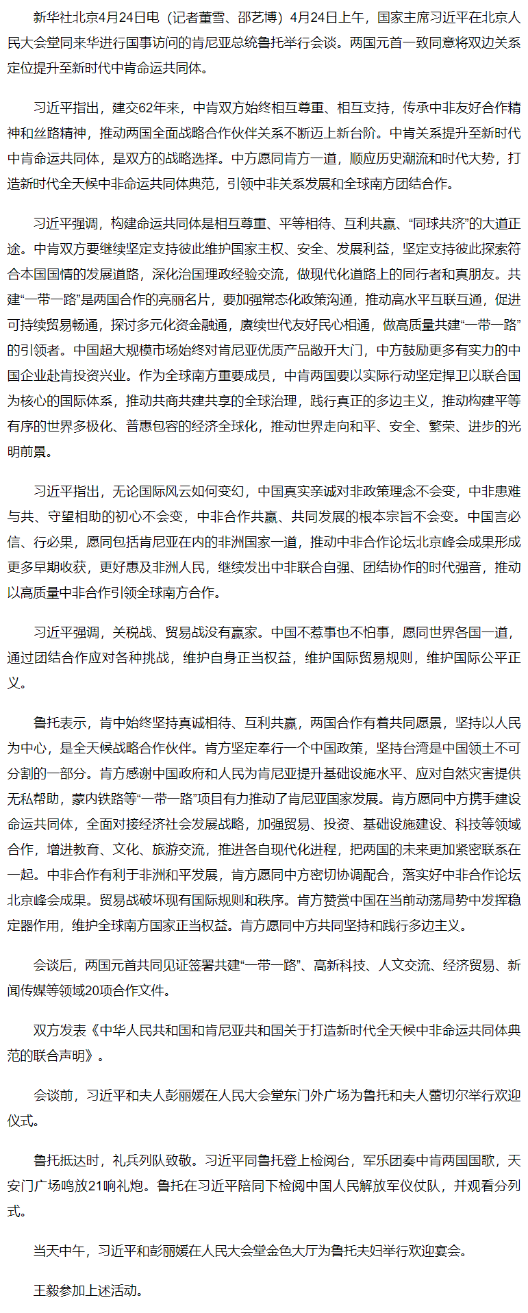習近平同肯尼亞總統(tǒng)魯托會談