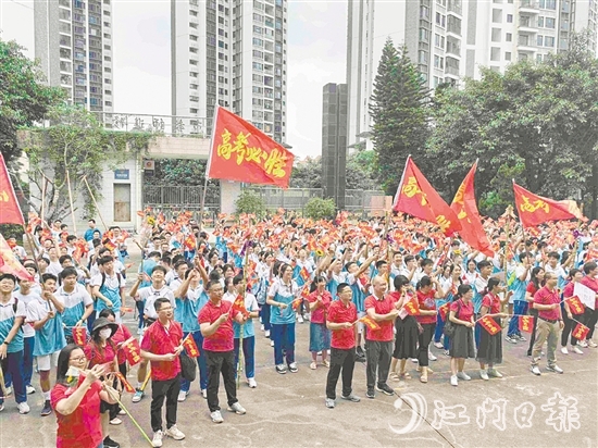 ????今天,我市近2.9萬名學(xué)子將走進(jìn)考場,書寫青春的答卷。圖為新會梁啟超紀(jì)念中學(xué)舉辦送考儀式,為考生們加油鼓勁。鐘珍玲攝