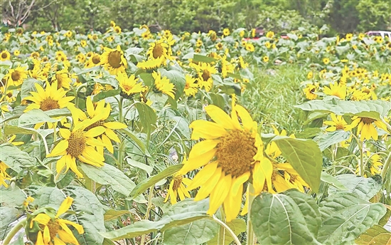 長春花、蘇丹鳳仙花等多種鮮花映襯著大片的向日葵花田,讓城西村成為一片花的海洋。