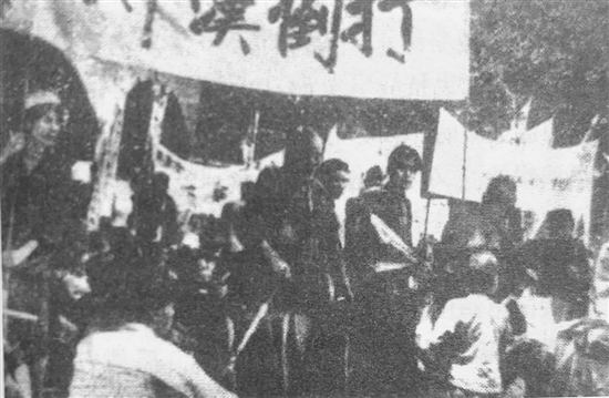 ????1942年七八月間,紅線女跟隨馬師曾帶領(lǐng)的劇團(tuán)進(jìn)入廣西演出。為了配合抗日宣傳以及為抗戰(zhàn)籌款勞軍,他們演出馬師曾自己編寫、痛斥漢奸賣國賊的《洪承疇》等戲劇,借古諷今。其中有一段唱道:“衰漢奸、病漢奸,千刀千刀理該斬……”由獨(dú)唱到全場合唱,節(jié)奏由慢而快,氣氛熱烈,整個劇場掌聲雷動,群眾不由得振臂高呼“打倒?jié)h奸賣國賊!”