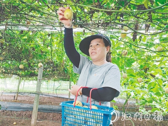 ????盛夏時節(jié),新會厚承現(xiàn)代農(nóng)業(yè)生態(tài)園的黃金百香果上市。該生態(tài)園位于崖門鎮(zhèn),生態(tài)園工作人員莫冬瓊介紹,成熟的黃金百香果表皮呈金黃色,采摘時只需輕碰果蒂即可摘下。黃金百香果比普通品種更香甜,預計采摘期持續(xù)至8月中旬。暑假期間,有不少家長帶著孩子走進生態(tài)園采摘黃金百香果,感受田園生活。