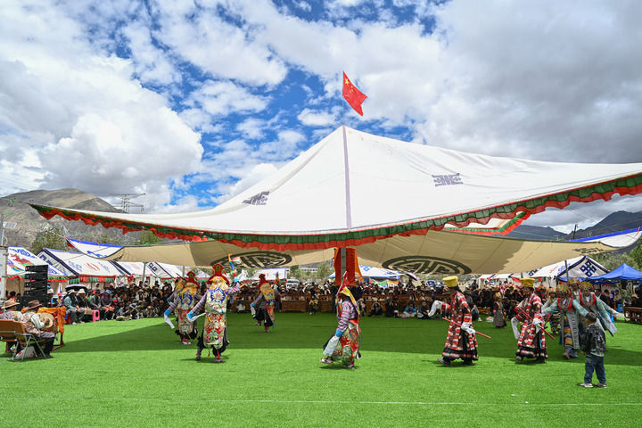 ??民間藏戲表演隊在西藏南木林縣非遺公園內(nèi)表演湘巴藏戲(2025年7月16日攝)。新華社記者 李鑫 攝