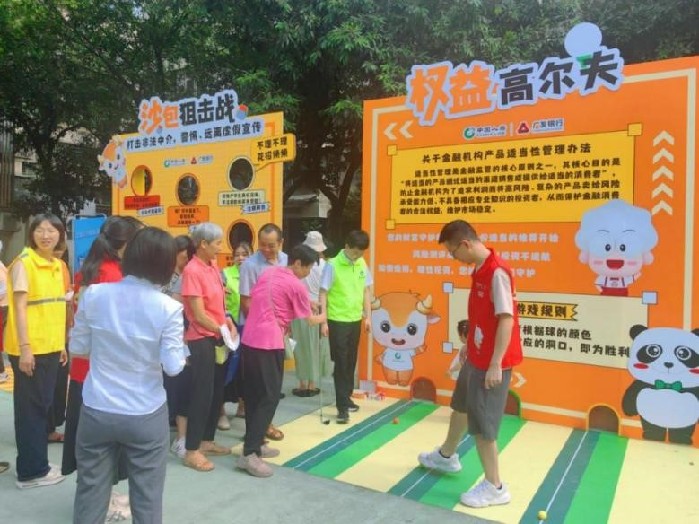 活動(dòng)現(xiàn)場(chǎng)還精心設(shè)置了三大體驗(yàn)區(qū),構(gòu)成了一個(gè)集教育、互動(dòng)、服務(wù)于一體的迷你創(chuàng)意市集?!皺?quán)益高爾夫”“沙包狙擊戰(zhàn)”兩大游戲吸引眾多銀齡客戶(hù)參與。在“權(quán)益高爾夫”中,參與者通過(guò)推桿進(jìn)洞學(xué)習(xí)金融消費(fèi)者八大權(quán)益;“沙包狙擊”則以擊打“非法集資”“高息誘惑”等標(biāo)靶的方式,幫助老年人識(shí)別詐騙套路,現(xiàn)場(chǎng)歡聲笑語(yǔ)不斷。