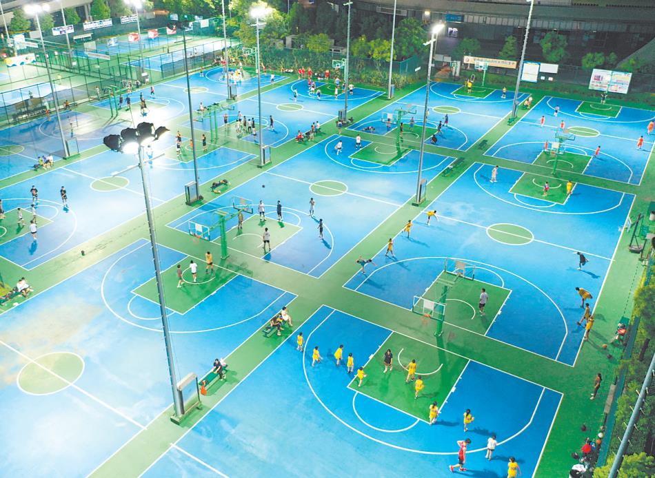 ????除了大型體育公園,江門還“見縫插針”完善社區(qū)健身設(shè)施。在江海區(qū)外海街道四大社區(qū),老舊休閑公園改造后,新增兒童籃球場(chǎng);在禮樂街道新民村,高速公路橋下的閑置空間也被充分利用起來,建設(shè)成規(guī)范的燈光籃球場(chǎng)……