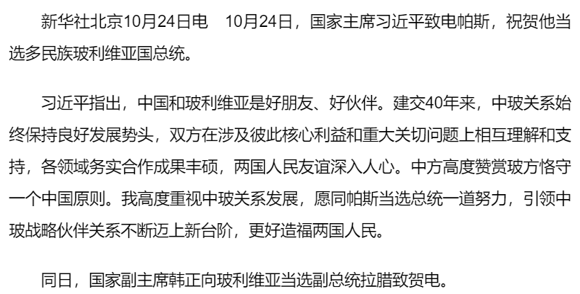 習(xí)近平致電祝賀帕斯當(dāng)選玻利維亞總統(tǒng)