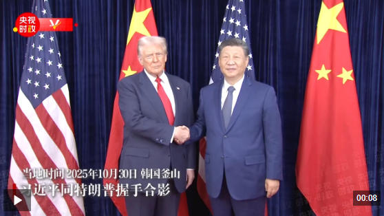? 當地時間10月30日中午,中美元首會晤開始前,習近平同特朗普握手合影。