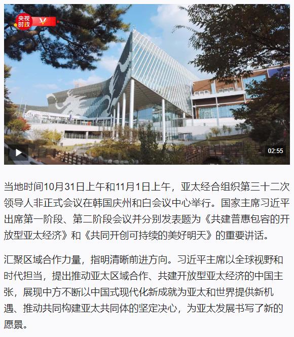 時政微紀(jì)錄丨習(xí)主席的韓國APEC時間:書寫亞太發(fā)展新愿景