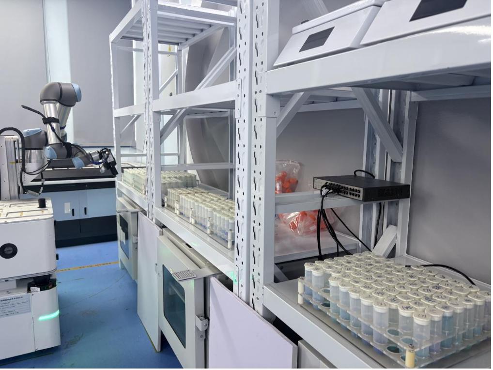 ??在實驗桌前,一名“智能科學家”正抬起結實的機械臂抓取試管,依次走過液體進樣臺、磁力攪拌臺、烘干工作臺,進行樣品稱重、攪拌、離心、烘干……