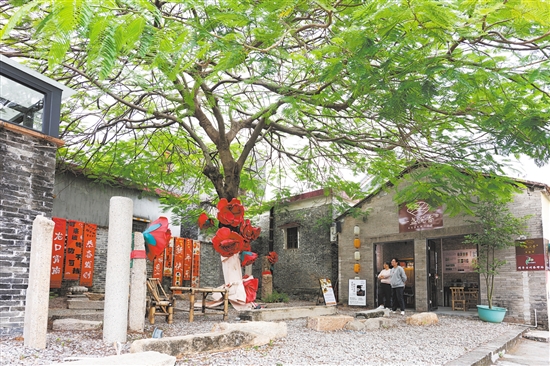 良好的村容村貌,為霄南村大力發(fā)展文旅產(chǎn)業(yè)打下了堅實的基礎(chǔ)。龍口鎮(zhèn)緊緊圍繞“百千萬工程”有關(guān)要求,推動霄南村深挖本土優(yōu)勢資源,積極開展招商引資工作,通過“戶主收租+政府托管+社會經(jīng)營”的模式,委托鶴山市富盛物業(yè)管理有限公司整合村內(nèi)30多間閑置青磚屋并實施統(tǒng)一管理,為商戶提供場地基礎(chǔ)。