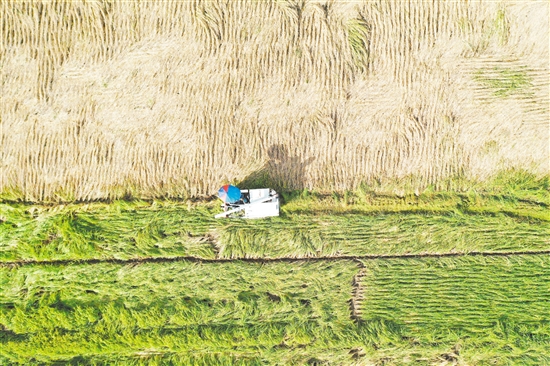 新會(huì)區(qū)大鰲鎮(zhèn)農(nóng)業(yè)發(fā)達(dá),土地肥沃,水質(zhì)優(yōu)良,是著名的“魚米之鄉(xiāng)”。近日,大鰲鎮(zhèn)早造水稻陸續(xù)收割,奏響了豐收的序曲。記者在大鰲鎮(zhèn)新一村、東風(fēng)村、大鰲尾村等地見到,稻田一片金黃,豐收在望,田野上機(jī)器轟隆,引來(lái)無(wú)數(shù)燕子在上空翩翩起舞。