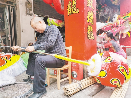 秋雨連綿的午后,記者再次見到這位省級(jí)非遺東藝宮燈代表性傳承人時(shí),他的臉上依然掛著笑容,架著一副眼鏡,一如既往地穿著那身定制的橙色上衣——“東藝宮燈”的字樣和圖案印在左胸,十分醒目。