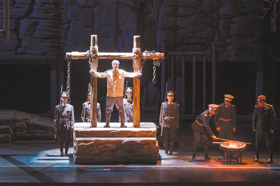 “頭可斷,肢可折,革命精神不可滅。壯士頭顱為黨落,好漢身軀為群裂!”“現(xiàn)在我們要結(jié)婚了,讓這刑場作為我們結(jié)婚的禮堂!讓反動派的槍聲,作為我們結(jié)婚的禮炮吧!”舞臺上,“周文雍”一番鏗鏘有力的話語贏得了陣陣熱烈的掌聲,信仰之美、忠誠之美、崇高之美震撼觀眾的心靈。