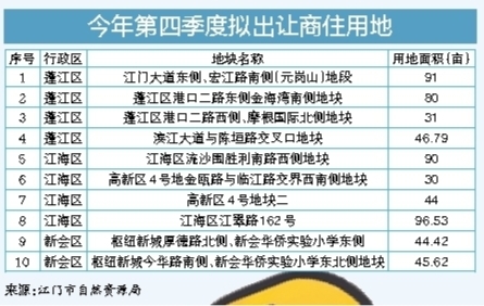 ????近日,記者從市自然資源局獲悉,第四季度市區(qū)共有10宗商住用地“待嫁”,其中不少都是“寶藏”地塊。分區(qū)域來看,這10宗土地有4宗位于蓬江區(qū),4宗位于江海區(qū),新會區(qū)則有2宗。